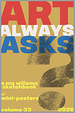 Mo Willems: Art Always Asks ART ALWAYS ASKS is a series of five prints done in concordance with the 2026 Volume 33 edition of the Mo Willems Sketchbook. Is Art a series of questions that become a dialog between the artist (ask-er) and the audience (ask-ie)? Limited Edition Prints Joke? Jam? Jump? Sing? Scribble? Portfolio of 5 Art Always Asks Art © Mo Willems Post navigation Back